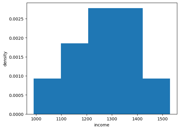 ax.hist(x, bins=5, density=True, histtype='bar')